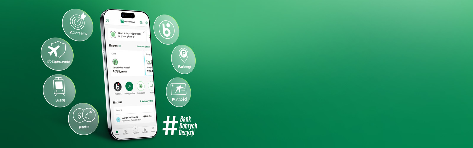 Informujemy, że 1.04.2026 od godziny 22:00 do godziny 01:00, 2.04.2026 serwis www.bnpparibas.pl będzie niedostępny ze względu na zaplanowane prace serwisowe. Podczas przerwy możliwy będzie dostęp do systemów transakcyjnych, prezentowane będą numery infolinii oraz do zastrzegania kart.