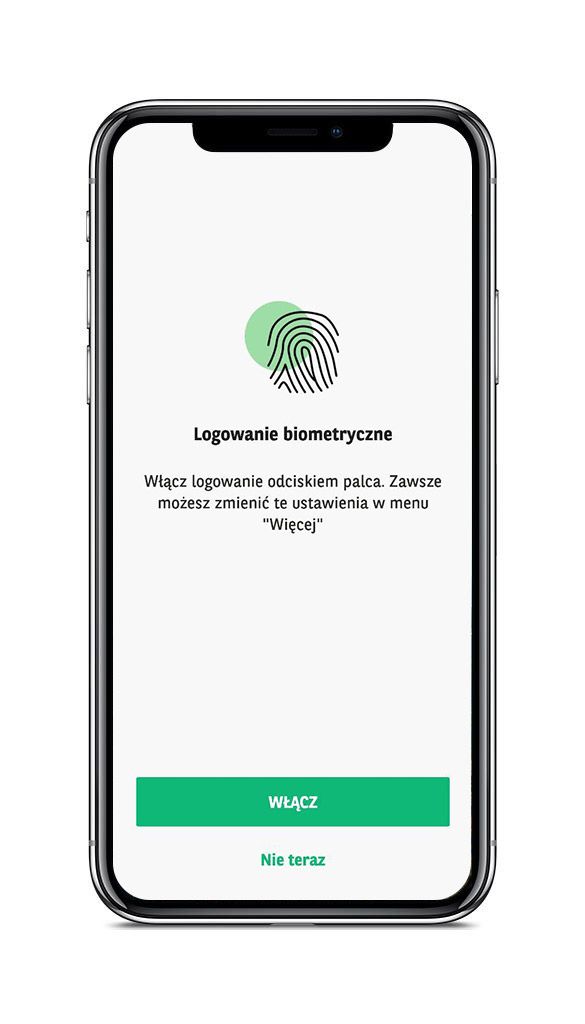 *Autoryzacja transakcji i logowanie biometrią dostępne są jeśli Twój telefon obsługuje biometrię, została ona skonfigurowana i spełnia wymogi bezpieczeństwa.