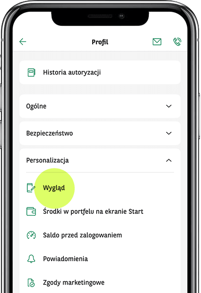 Na górnym pasku kliknij Profil, następnie Personalizacja.