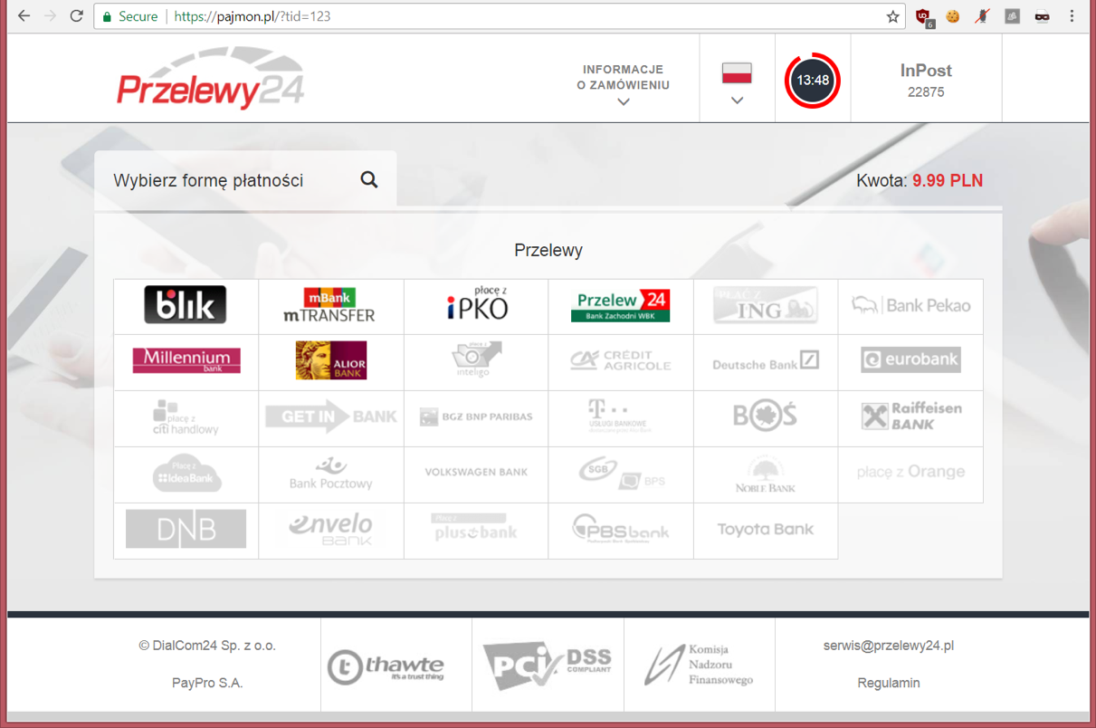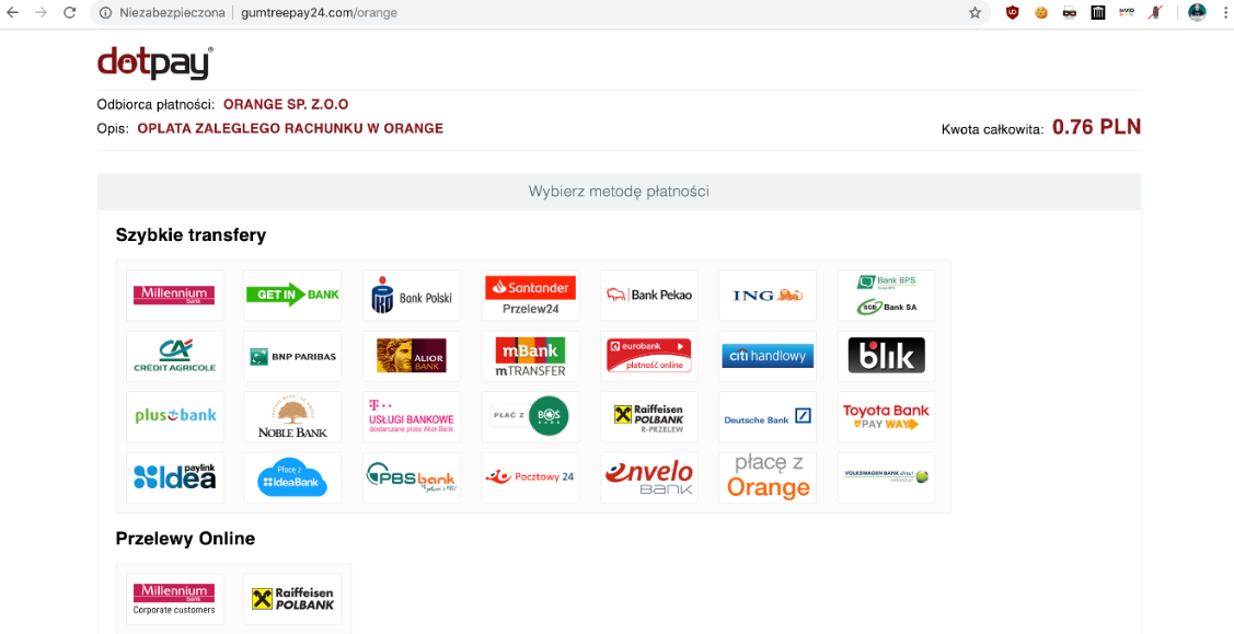 Przestępcy podszywają się pod serwisy oferujące szybkie przelewy (np. Dotpay, PayU, czy Przelewy24). Podstawione strony przestępców wyłudzają loginy i hasła do bankowości internetowej oraz kody autoryzacyjne zatwierdzające przelewy.