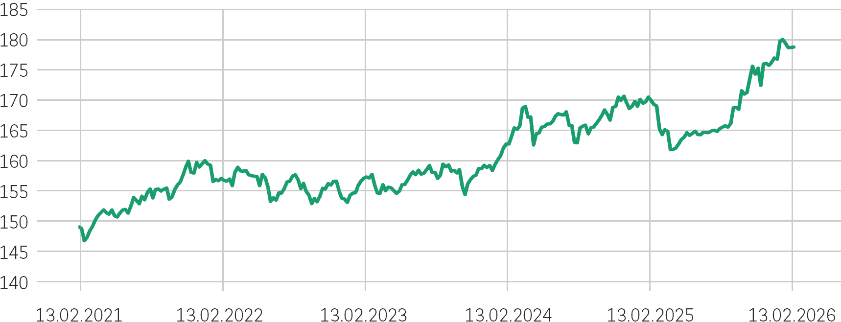 Datą rozpoczęcia notowań dla Indeksu jest dzień 26 maja 2025 r. Wcześniejsze notowania przedstawione na wykresie nie stanowią rzeczywistych wyników, są one danymi hipotetycznymi przeliczonymi wstecz w oparciu o metodologię indeksu obowiązującą w dniu rozpoczęcia notowań. Więcej informacji na stronie internetowej notowania indeksu.