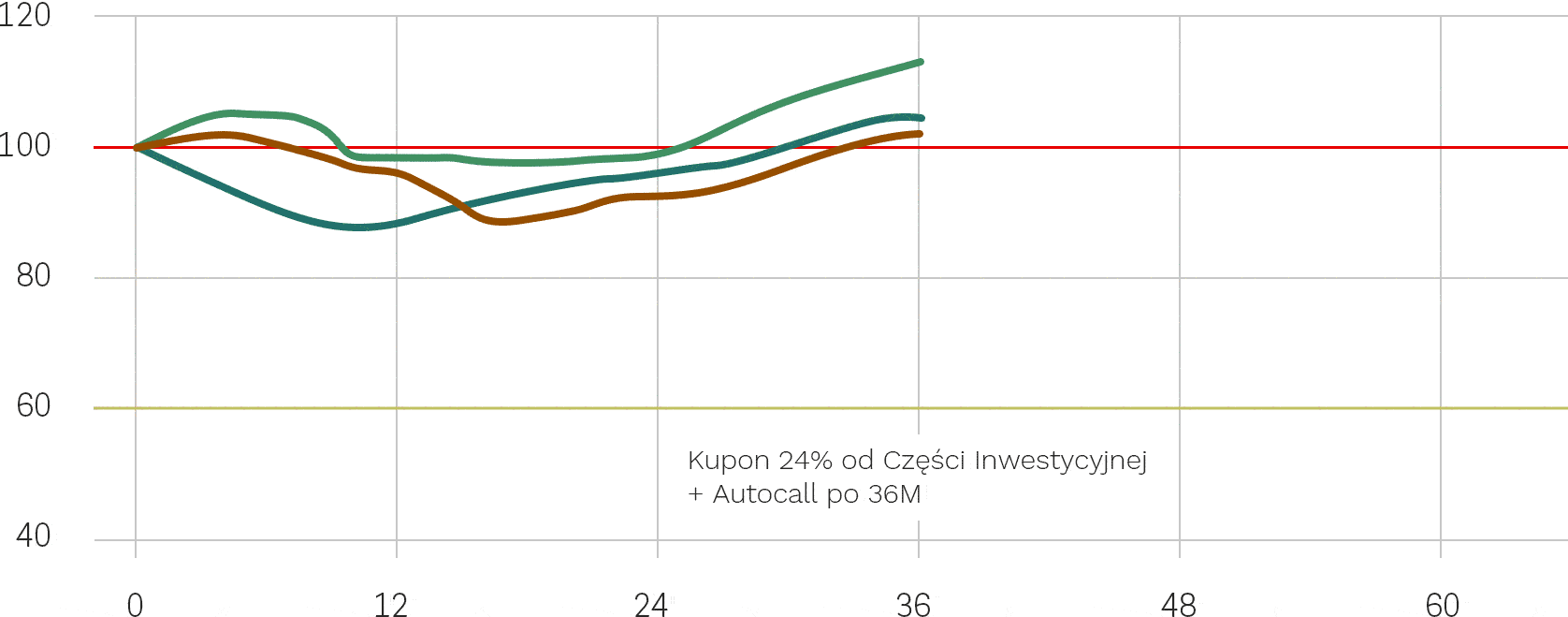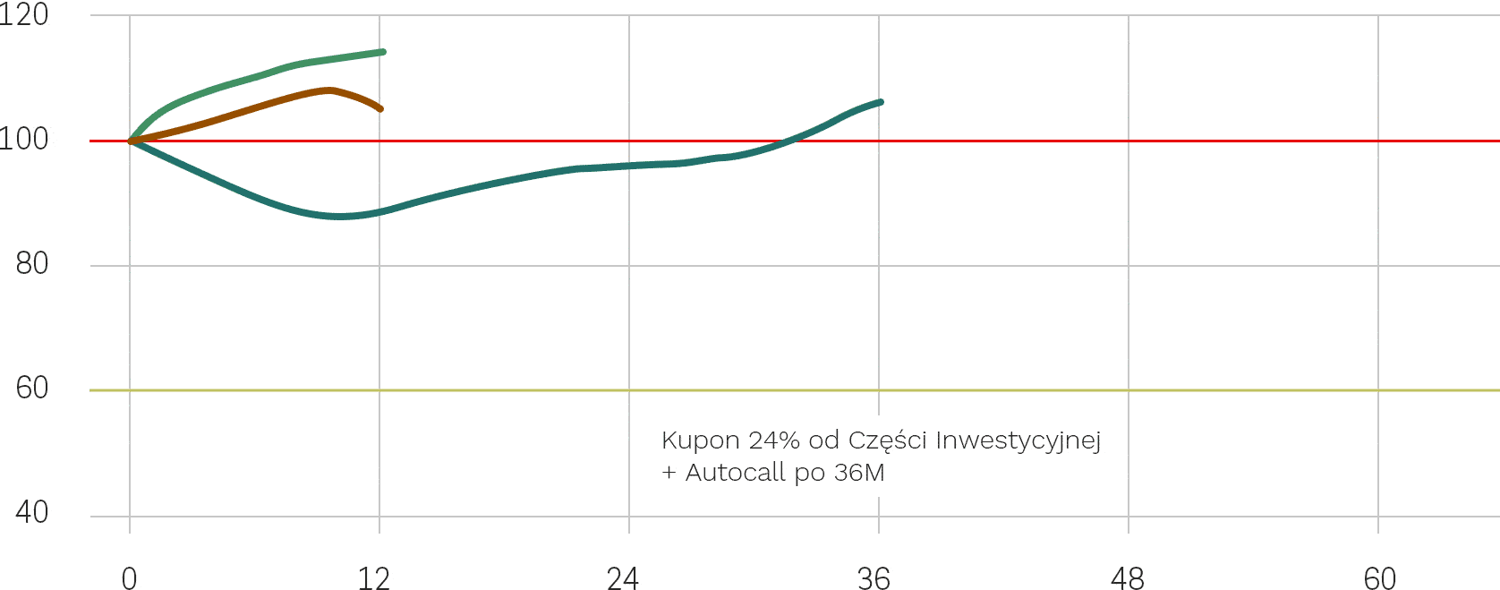 - wszystkich Spółek będą na lub powyżej 60% Poziomu Początkowego - inwestor otrzymuje zwrot Części Inwestycyjnej;