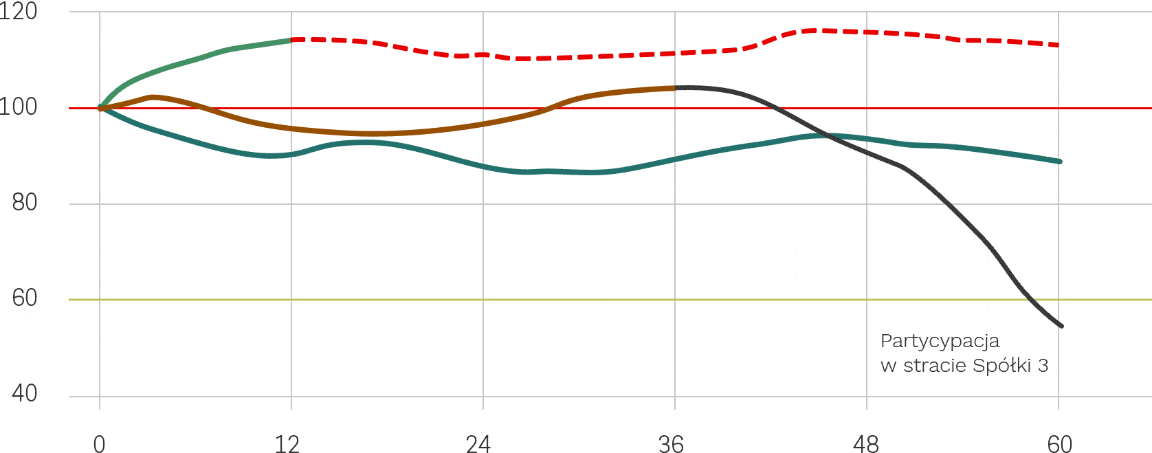 Ochrona kapitału nie dotyczy sytuacji wycofania się Inwestora z inwestycji z jego inicjatywy oraz przypadku, w którym w Dniu Wyceny Wykupu wartość notowania akcji którejkolwiek Spółki znajdzie się poniżej 60% Poziomu Początkowego.