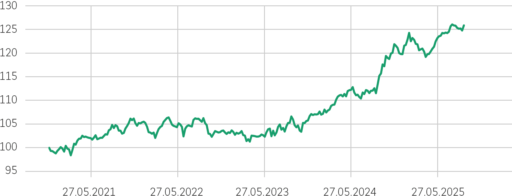 Datą rozpoczęcia notowań dla Indeksu jest dzień 21 sierpnia 2025 r. Wcześniejsze notowania przedstawione na wykresie nie stanowią rzeczywistych wyników, są one danymi hipotetycznymi przeliczonymi wstecz w oparciu o metodologię indeksu obowiązującą w dniu rozpoczęcia notowań. Więcej informacji na stronie internetowej notowania indeksu.