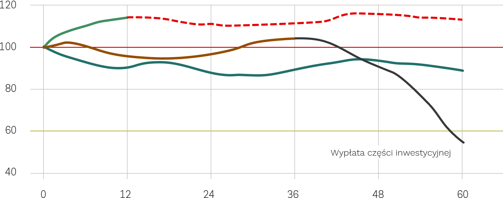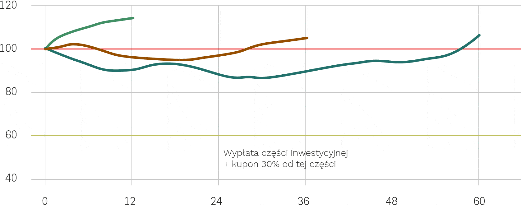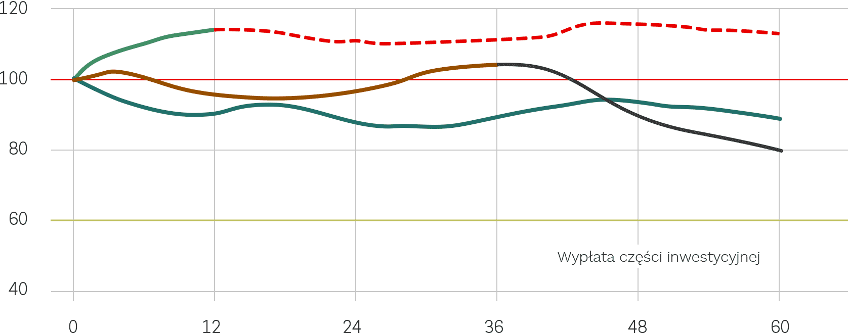 - wszystkich Spółek będą na lub powyżej 60% Poziomu Początkowego - inwestor otrzymuje zwrot Części Inwestycyjnej;