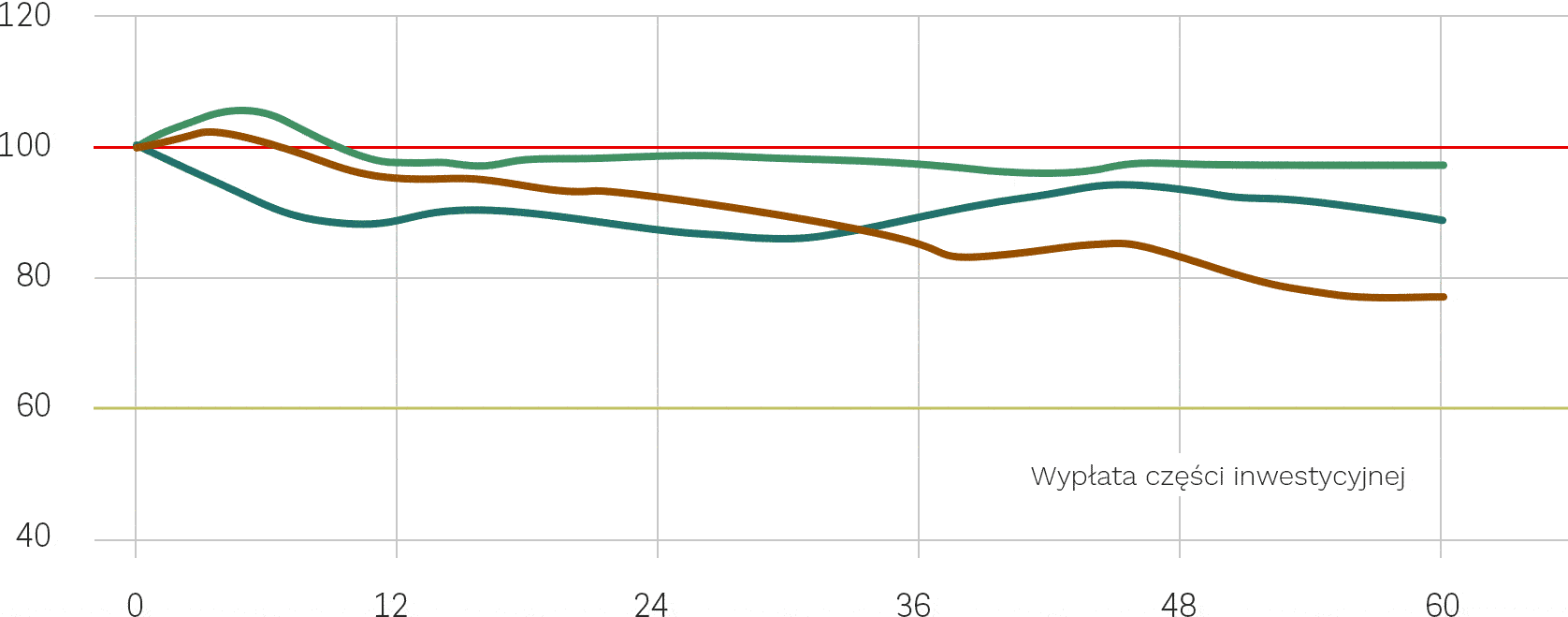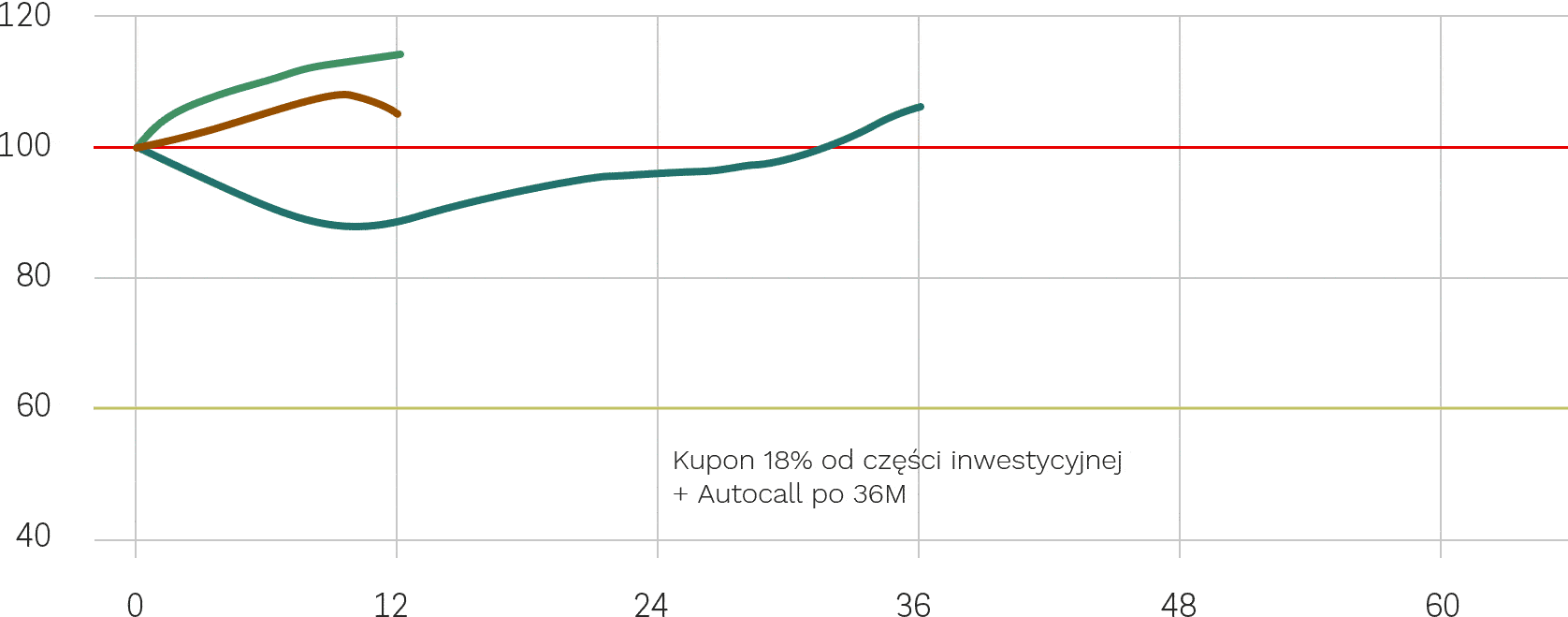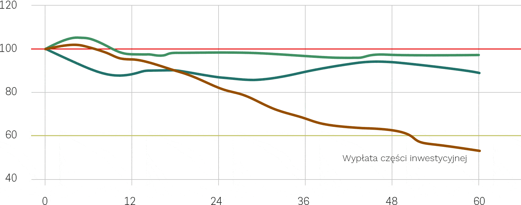 - wszystkich Spółek będą na lub powyżej 60% Poziomu Początkowego - inwestor otrzymuje zwrot Części Inwestycyjnej;