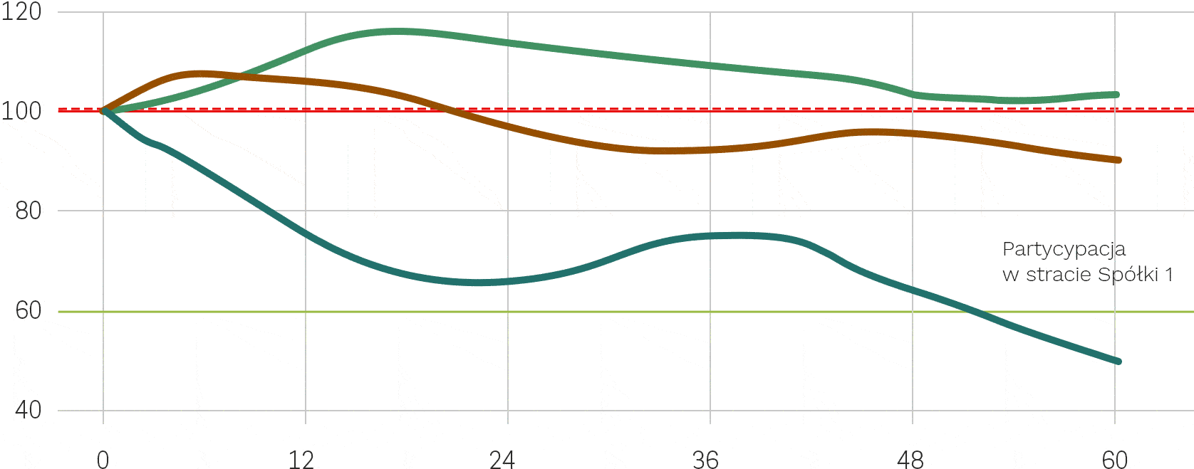 - jeżeli spadek notowań akcji którejkolwiek Spółki nie przekroczy 40%