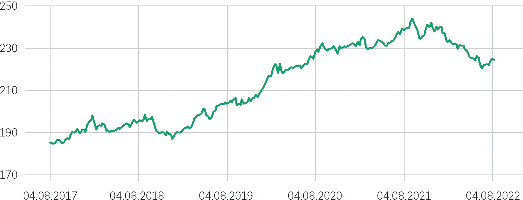 Datą rozpoczęcia notowań dla Indeksu jest dzień 21 marca 2022 r. Wcześniejsze notowania przedstawione na wykresie nie stanowią rzeczywistych wyników, są one danymi hipotetycznymi przeliczonymi wstecz w oparciu o metodologię indeksu obowiązującą w dniu rozpoczęcia notowań. Więcej informacji na stronie internetowej notowania indeksu.