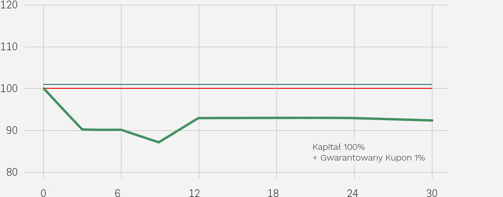 W Dniu Wykupu Inwestor otrzymuje zwrot wartości nominalnej Certyfikatu, tj. wartości inwestycji pomniejszonej o wysokość pobranej opłaty dystrybucyjnej oraz Gwarantowany Kupon w wysokości 1% wartości nominalnej Certyfikatu (niezależnie od wzrostu lub spadku notowań indeksu).