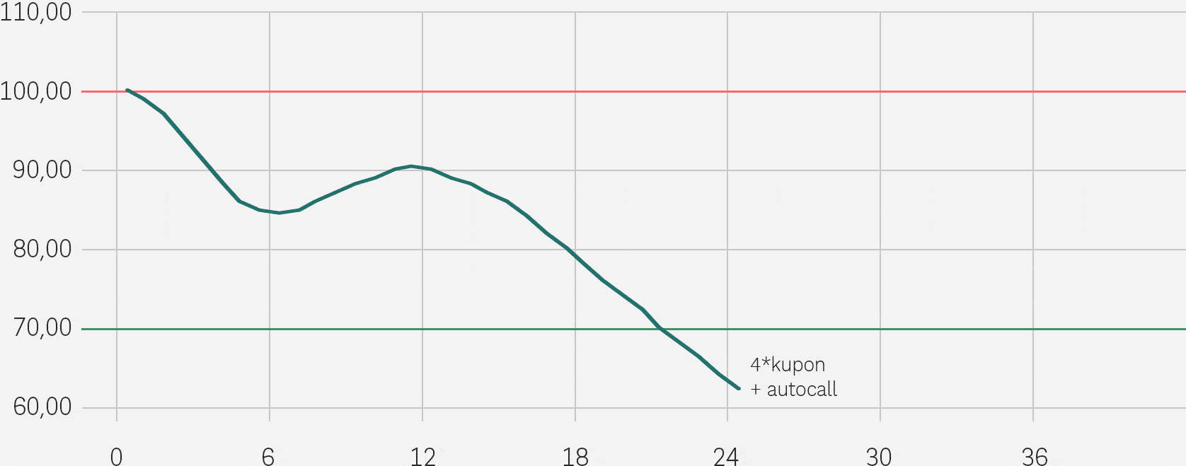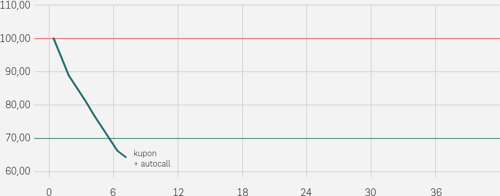 Jeżeli we wszystkich Dniach Obserwacji wartość Indeksu będzie równa lub wyższa od Poziomu Bariery Automatycznego Wcześniejszego Wykupu oraz Bariery Wypłaty Kuponu, produkt trwać będzie do Dnia Wykupu.