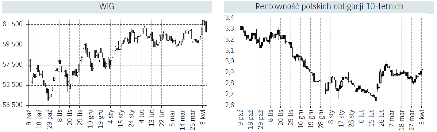 w marcu 50.0 pkt. Lepsze od oczekiwań były również dane ISM nt. aktywności w sektorze przemysłowym USA. - W bieżącym tygodniu zwracamy uwagę na wydarzenia mające miejsce w środę (10.04) czyli posiedzenie EBC oraz publikacje minutek z obrad FOMC.