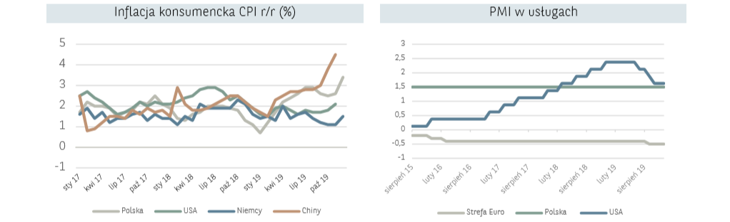 Ubiegły tydzień rozpoczął się od publikacji ostatecznych wyników indeksów PMI dla europejskiego sektora usługowego, które okazały się pozytywnym zaskoczeniem. Wskaźnik dla całej strefy euro wzrósł do poziomu 52,8 pkt wobec oczekiwanych 52,4 pkt zgodnych z wstępnym odczytem. Niemniej jednak w dalszym ciągu to sektor przemysłowy pozostaje głównym problemem ciążącym na wynikach poszczególnych gospodarek. Indeks PMI łączący oba powyższe sektory strefy euro w grudniu ubiegłego roku wyniósł zaledwie 50,9 pkt, czyli znajduje się jedynie nieznacznie powyżej granicy 50 punktów, która dzieli rozwój od recesji. Tym samym ostatni kwartał 2019 roku był najgorszym w strefie euro od 2013 roku. Dane PMI sugerują, że strefa euro prawdopodobnie w powyższym okresie nie wzrosła więcej niż o 0,1%.