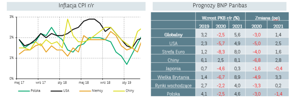 Z kolei według MFW globalna gospodarka wyraźnie osłabi się w wyniku pandemii, a PKB zmniejszy się o 3% w 2020 r. Najciężej dotknięta zostanie strefa euro, której gospodarka według raportu skurczy się o 7,5%. W USA prognozowany jest nieznacznie niższy spadek do -6,1%. Opublikowane prognozy ponownie zwiększyły awersję do ryzyka wśród inwestorów przypominając, że spowolnienie jest jeszcze przed nami.
