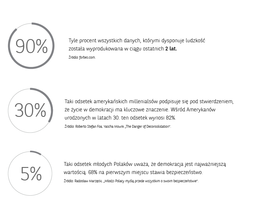 Postrzeganie wpływu, jaki rewolucja cyfrowa wywiera na budowanie demokratycznego ładu na świecie przeszło w ciągu niecałej dekady spektakularną ewolucję. W krótkim czasie przebyliśmy drogę z wypełnionego rozentuzjazmowanym tłumem placu Tahrir, po przeszukiwane przez policę biura firmy Cambridge Analytica. Była to podróż od nadziei związanej z percepcją nowych technologii komunikacyjnych jako skutecznego narzędzia w oddolnej walce o demokrację, po oburzenie wywołane oskarżeniami o wykorzystywanie dostarczanych przez nas danych w bezwzględnej walce o władzę.