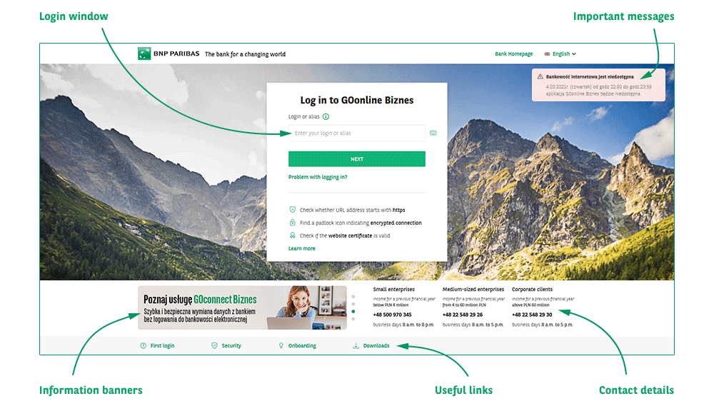 We are continuously making new models and features available. We keep improving the service to make it more friendly and easy to use. The process of launching subsequent GOonline Biznes modules has been grouped into stages at which new versions of the existing features will be made available.