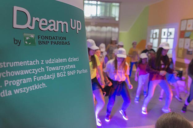 DREAM UP to międzynarodowy, 3-letni program edukacyjny zainicjowany przez BNP Paribas Foundation z Paryża, realizowany w 26 krajach, angażujący ponad 30 000 dzieci, którego celem jest ich rozwój artystyczny i społeczny. W Polsce w ramach programu Dream up, organizujemy zajęcia muzyczne w ogniskach wychowawczych w Warszawie. Wspólne muzykowanie wspiera rozwój, rozwija kreatywność i buduje harmonię emocjonalną dzieci i młodzieży. Inicjatywa realizowana jest we współpracy z Fundacją Muzyka jest dla wszystkich oraz Towarzystwem Przyjaciół i Centrum Wspierania Rodzin.