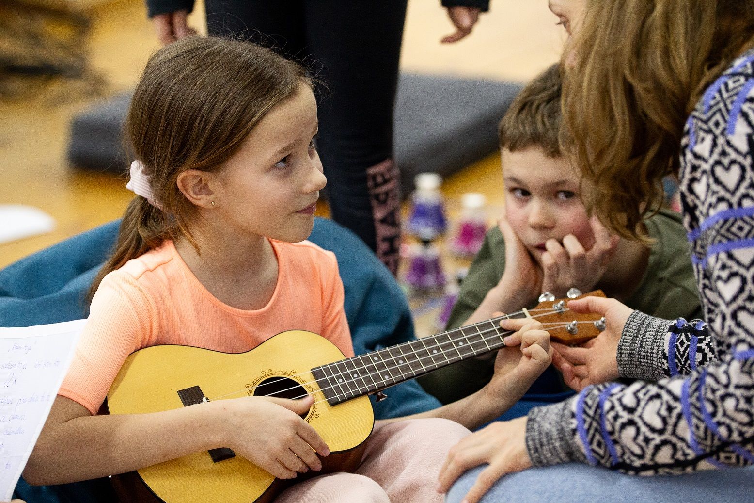 - Nauka gry na instrumentach (m.in. flety, gitary, ukulele, skrzypce, djemble, bongosy) oraz śpiewu.