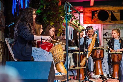 - Regularne bezpłatne zajęcia muzyczne Dziewczyńskiej Grupy Bębniarskiej.