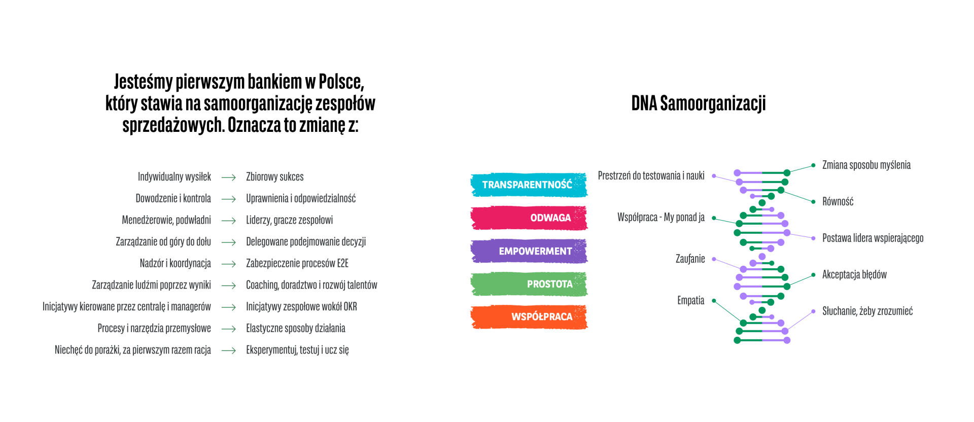 Naszymi wspólnymi celami jest zadowolenie pracowników, Klientów, udziałowców oraz pozytywny wpływ na środowisko. Wierzymy, że kulturowa zmiana modelu zarządzania, z jeszcze większym naciskiem na #współpracę, pogłębi i wzmocni transformację naszej organizacji.
