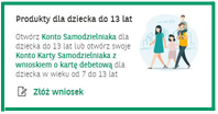 Po prawej stronie ekranu na banerze Produkty dla dziecka do 13 lat kliknij Złóż wniosek