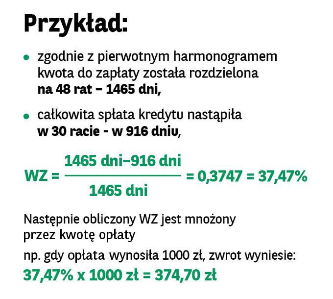 Bank wylicza zwrot proporcjonalnie do okresu trwania kredytu (metoda liniowa)