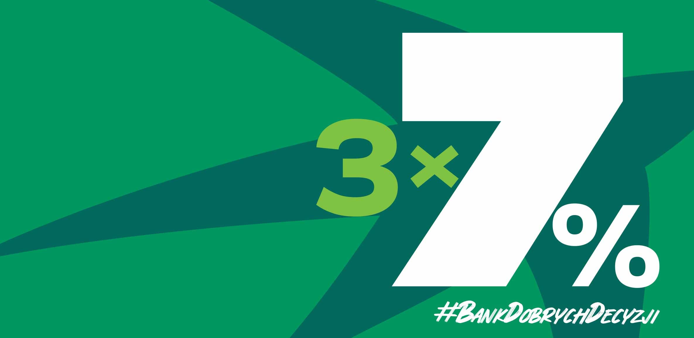 3 7% zwrotu za płatności kartą – do 300 zł w okresie promocji (50 zł/mc na 6 mies) po spełnieniu następujących warunków: otworzysz konto osobiste z kartą oraz dostępem do bankowości elektronicznej i Konto Lokacyjne oraz w każdym z kolejnych 6 miesięcy po otwarciu konta osobistego wykonasz minimum jedną transakcję bezgotówkową oraz na dzień wydania każdej z nagród będziesz posiadaczem konta osobistego i Konta Lokacyjnego.