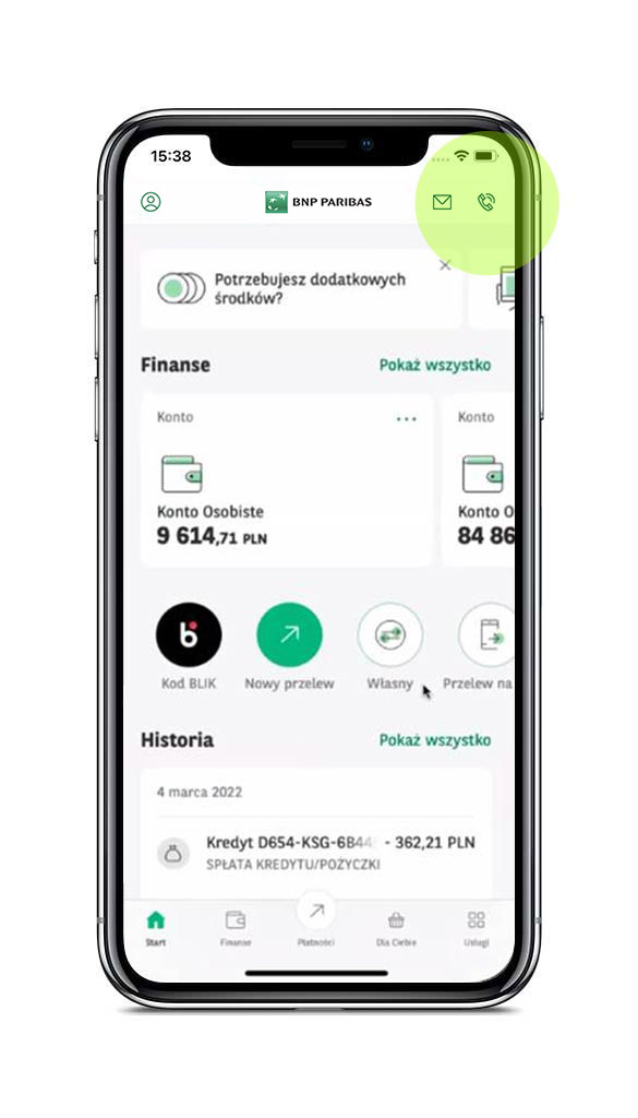 Zaloguj się do aplikacji GOmobile. W prawym górnym rogu ekranu kliknij ikonę słuchawki.