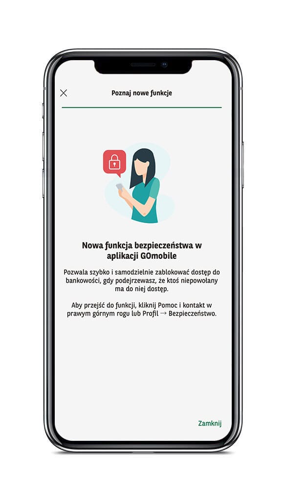 Bezpieczeństwo Twoich pieniędzy to nasz priorytet. W aplikacji GOmobile dodaliśmy funkcję Panic Button, która pozwala szybko zablokować dostęp do bankowości, gdy coś wzbudzi Twój niepokój.