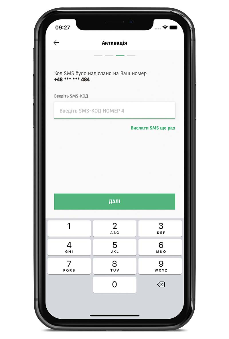Після перевірки особи введіть SMS-код, потім натисніть Далі. |