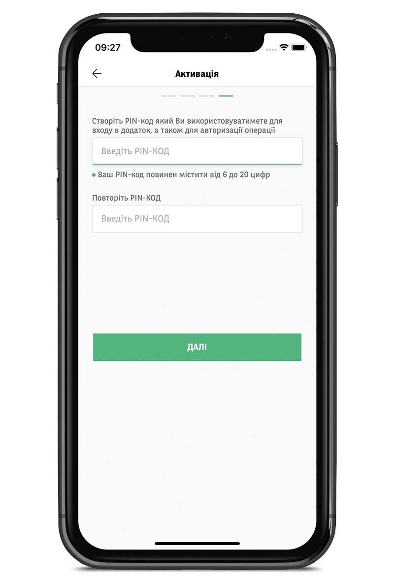 Створіть свій персональний PIN-код (не менше 6 цифр), а потім підтвердьте його й натисніть Далі. |