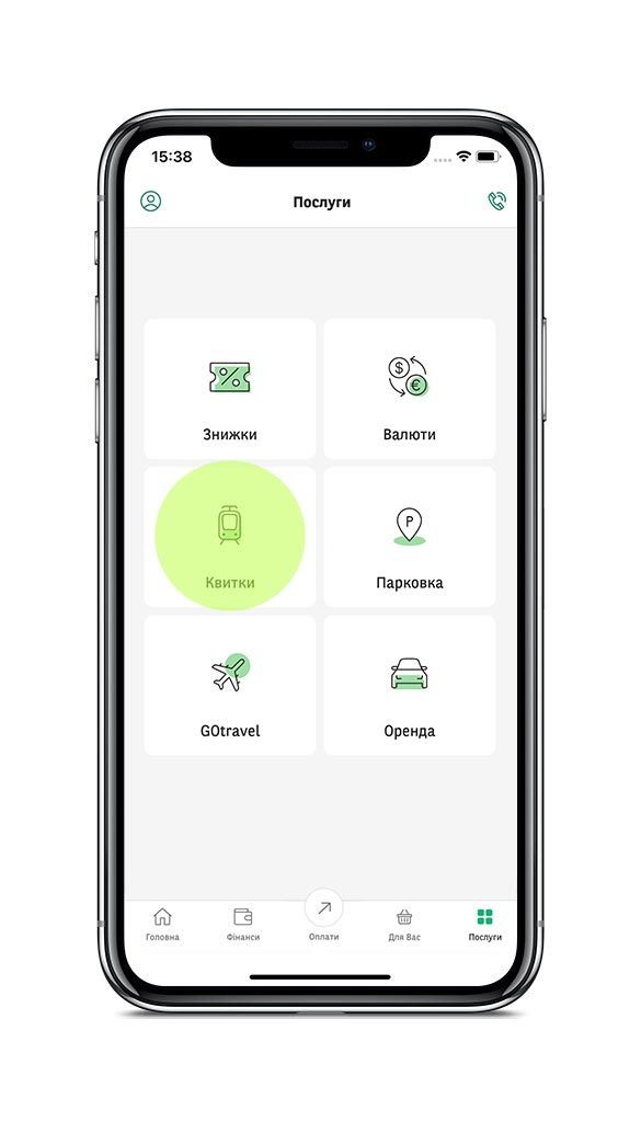 Ви можете придбати квитки на громадський транспорт зі стартового екрана програми (без входу в систему) або після входу в розділ Сервіси> Квитки.