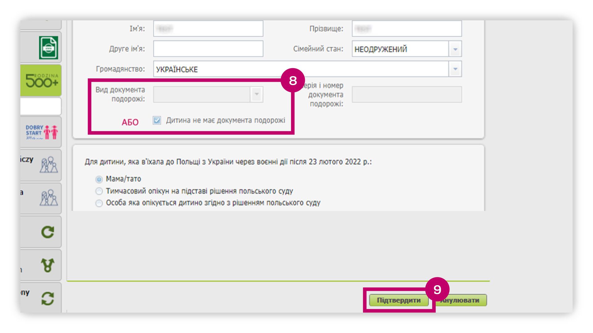 Якщо у ваших дітей немає паспорта, ви можете зазначити відповідне поле.