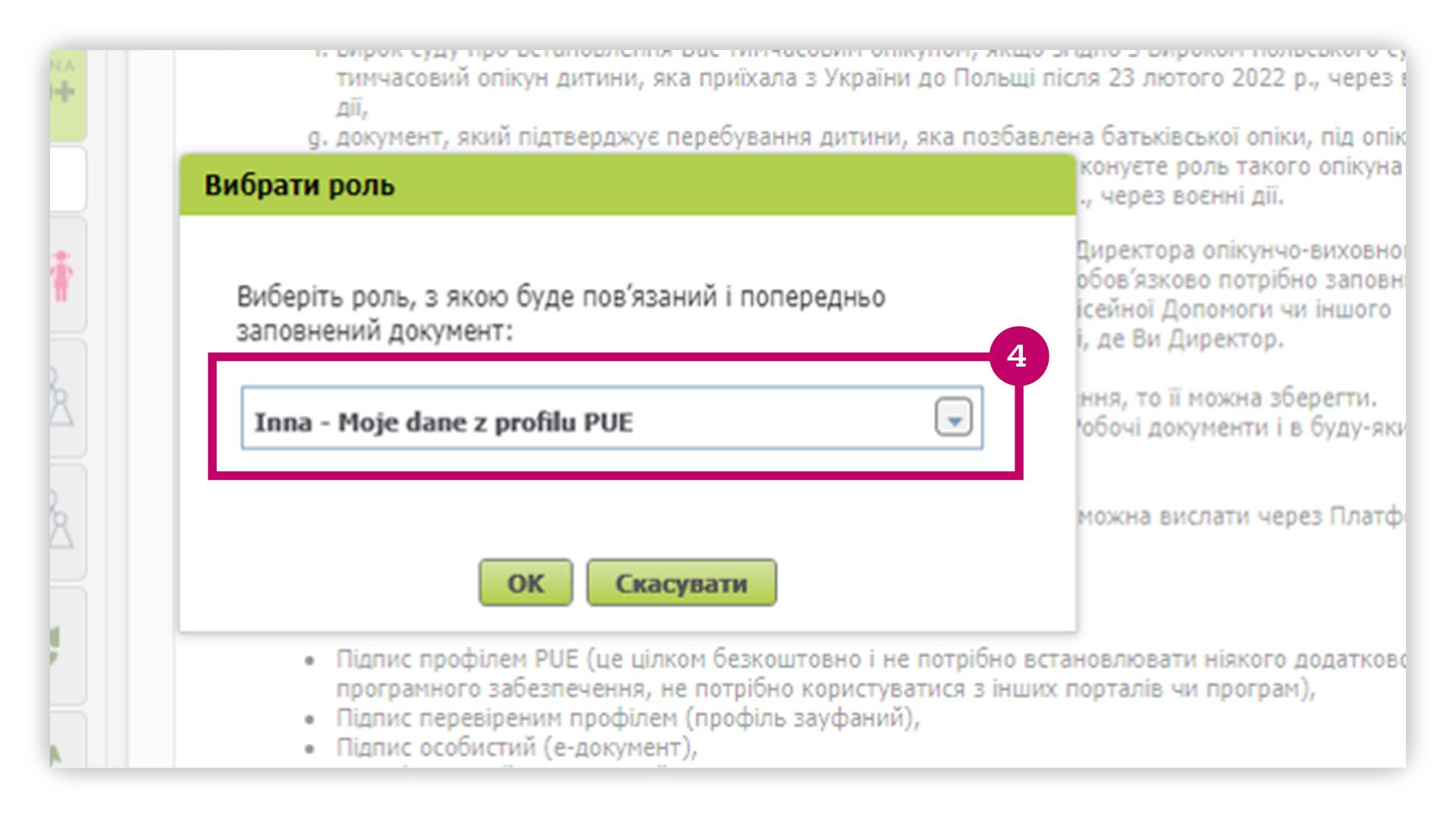 - документ, що підтверджує, що дитина, позбавлена батьківського піклування, перебуває під опікою органів опіки та піклування, якщо за рішенням польського суду ви виступаєте опікуном дитини, яка прибула до Польщі з України в результаті 23 лютого 2022 р. бойових дій.