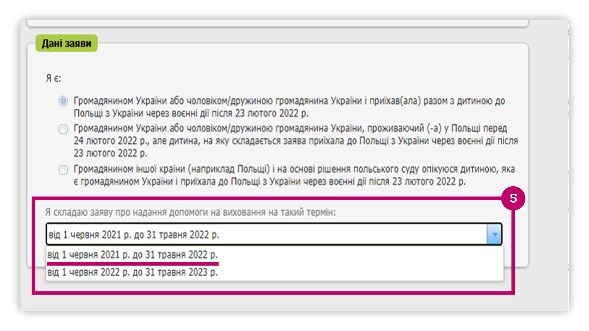 - громадянин України або чоловік/дружина громадянина України, який проживав у Польщі до 24 лютого 2022 року, але дитина, на яку подається пільга, прибула з України до Польщі після 23 лютого 2022 року у зв’язку з бойовими діями,