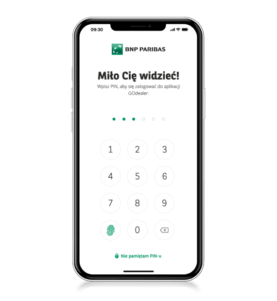 Logowanie za pomocą PIN lub biometrii (odcisk palca lub rozpoznawanie twarzy).