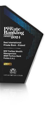 BEST INTERNATIONAL PRIVATE BANK IN POLAND Bank BNP Paribas otrzymał tytuł Best International Private Bank - Poland w międzynarodowym konkursie Global Private Banking Innovation Awards 2024. |