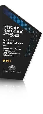 BEST PRIVATE BANK - EASTERN EUROPE Bank BNP Paribas otrzymał tytuł Best Private Bank-Eastern Europe (najlepszej bankowości prywatnej w Europie Wschodniej) w międzynarodowym konkursie Global Private Banking Innovation Awards 2025, którego wyniki ogłoszono 5.06.2025 r. Dowiedz się wiecej |